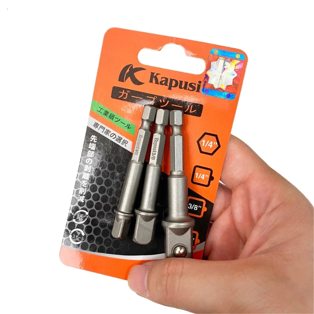 Sản phẩm ộ 3 đầu chuyển bắt vít sang mở ốc Kapusi K-7844 chuôi lục giác cho máy khoan điện, máy khoan pin có những đặc điểm nổi bật sau đây: