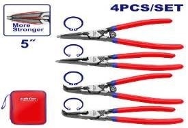 | Bộ kìm 4 chiếc 2 chiếc 180°, 2 chiếc 90° Kích thước: 5"/125mm Chất liệu: Cr-V cao cấp Xử lý bề mặt: hoàn thiện màu đen và đánh bóng Đóng gói bằng túi vải |