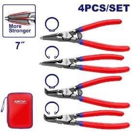 | Bộ kìm 4 chiếc 2 chiếc 180°, 2 chiếc 90° Kích thước: 7"/180mm Đường kính: 1,8mm Chất liệu: Cr-V cao cấp Xử lý bề mặt: hoàn thiện màu đen và đánh bóng Đóng gói bằng túi vải |