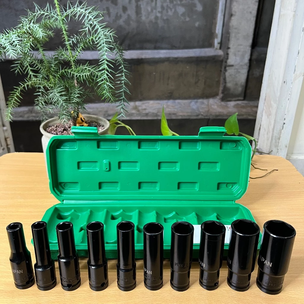 Bộ khẩu 1/2 10PCS 8,10,12,13,14,16,17,19,22,24mm có công dụng vô cùng hữu ích, là một dụng cụ chính trong gần như bất kỳ hộp công cụ nào vì tính linh hoạt và thiết kế và tiện ích vượt thời gian của chúng.