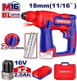 | Điện áp: 16V Tốc độ không tải: 0-850 vòng/phút Tốc độ va đập: 0-5100 vòng/phút Năng lượng va đập: 1,8J Khả năng khoan tối đa: Φ18 trong bê tông Hệ thống đầu kẹp SDS plus Đèn làm việc LED tích hợp Bao gồm: 3 mũi khoan bê tông 2 bộ pin M16 2.0Ah (EBPK1620) 1 bộ sạc M16 (EFCR1613) Đóng gói bằng hộp đựng |