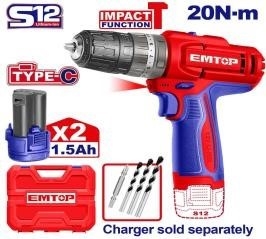 | Điện áp: 12V Tốc độ không tải: 400/0-1500 vòng/phút Tốc độ va đập tối đa: 22500 vòng/phút Mô-men xoắn cực đại: 20Nm Đầu kẹp bằng nhựa Khả năng kẹp: 0,8-10mm (1/32-3/8") Cài đặt mô-men xoắn: 18+1+1 Đèn làm việc LED tích hợp Bao gồm: 1 Mũi khoan Cr-V 65mm 3 Mũi khoan xây 2 Pin 1,5Ah (EBPK12153) Cổng sạc pin: USB type-C Đóng gói trong hộp đựng |