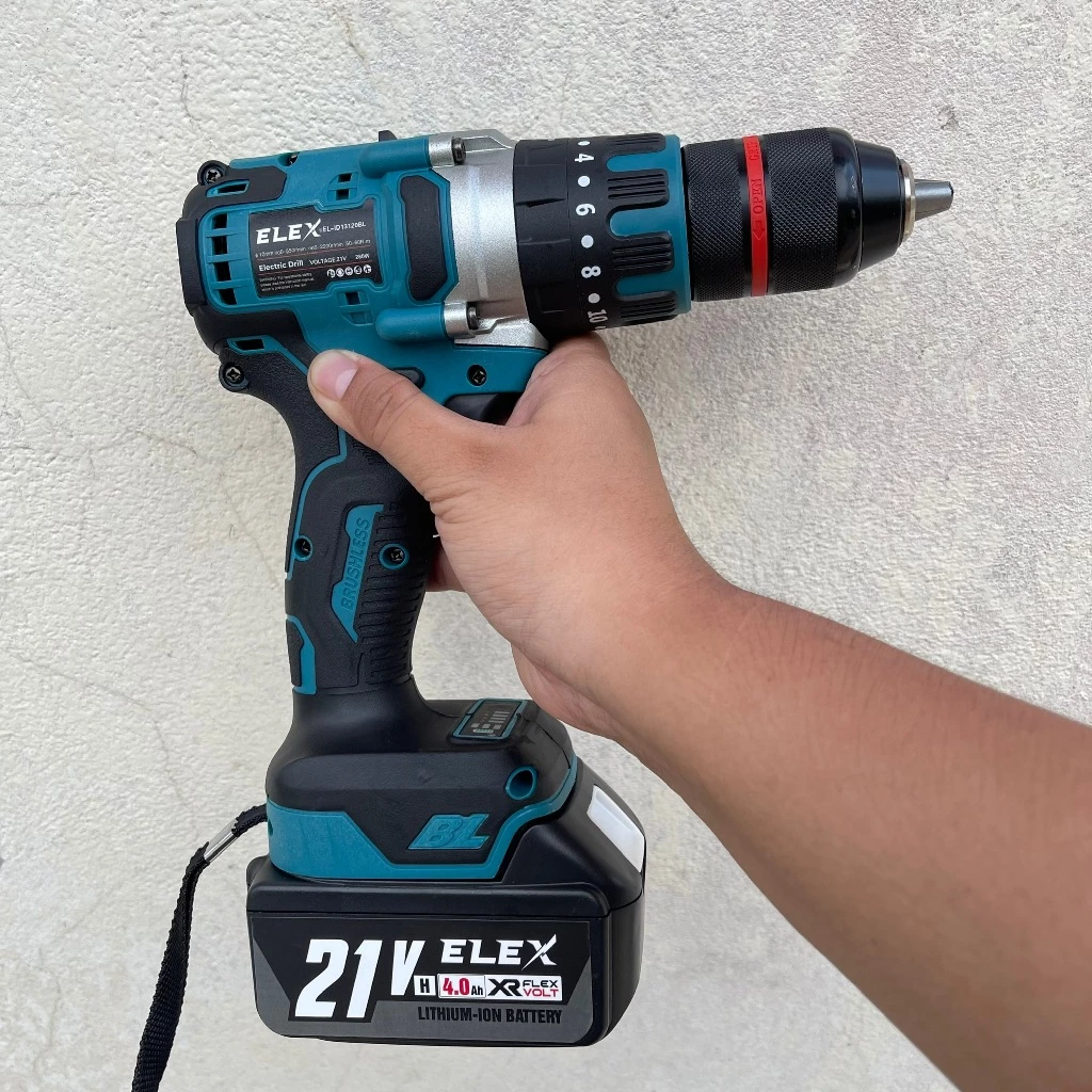 Máy Khoan Pin Elex Máy Khoan 3 Chức Năng Động Cơ Không Chổi Than - Đầu Auto Lock Viền Đỏ Khoan Tường | Gỗ | Thép Bấm mua hàng để biết giá từng loại Máy khoan Pin 3 Chức Năng - Model 2022, Motor Lõi Đồng 100%