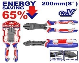 | Kích thước: 8"/200mm Tiết kiệm năng lượng 65% so với kìm thông thường Chất liệu: Cr-V cao cấp Xử lý bề mặt: lớp phủ teflon Tay cầm ba màu TPR cho độ bám chắc chắn và thoải mái Với chức năng gỡ lỗi Đóng gói bằng nửa vỉ đôi |
