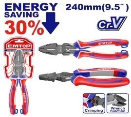 | Kích thước: 9.5"/240mm Tiết kiệm năng lượng 30% so với kìm thông thường Chất liệu: Cr-V cao cấp Xử lý bề mặt: lớp phủ teflon Tay cầm ba màu TPR cho độ bám chắc chắn và thoải mái Với chức năng uốn Với chức năng cờ lê Với chức năng gỡ lỗi Đóng gói bằng móc treo PP |
