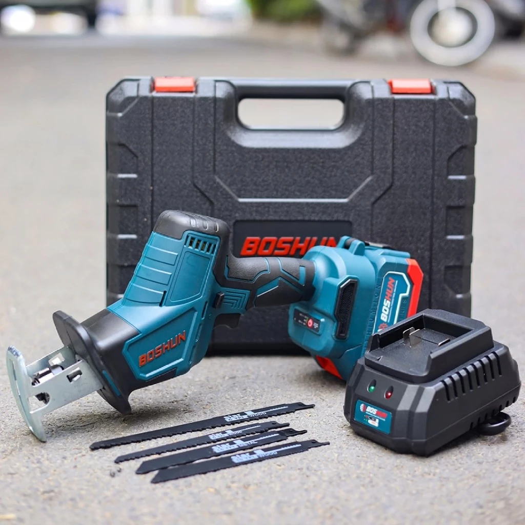 - Tên sản phẩm: Máy Cưa Kiếm Pin BOSHUN Cắt Đa Năng, Động Cơ Không Chổi Than, Lõi Đồng 100% - Tặng Kèm 4 Lưỡi Cưa
