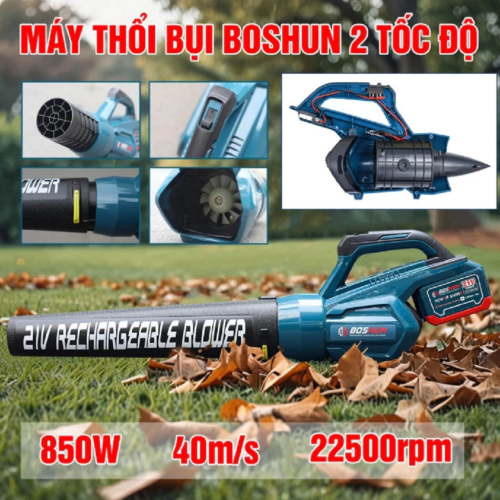 - Tên sản phẩm: Máy Thổi Bụi / Thổi Lá Dùng Pin BOSHUN BS-RB680M Công Suất Lớn 850W, Chỉnh 2 Cấp Tốc Độ, 12 Cánh Quạt Gió