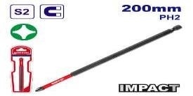 | Mũi bắt vít tác động PH2,200mm,1 cái Thép công nghiệp S2 Bề mặt màu đen có nam châm Đóng gói bằng vỉ đôi |