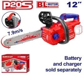 | Động cơ không chổi than Điện áp: 20V Tốc độ xích: 7,9m/giây Chiều dài thanh: 12"(30cm) Chức năng phanh xích nhanh Tự động bôi trơn Bao gồm: 1 chiếc xích cưa 12" 1 chiếc thanh cưa xích 12" Đóng gói theo hộp màu |