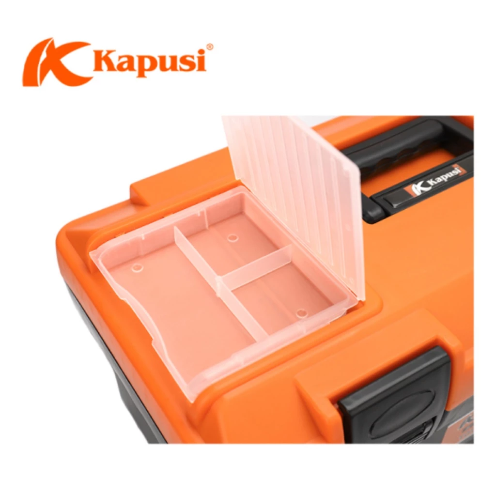 Hộp đựng dụng cụ KAPUSI có thiết kế mạnh mẽ, ngăn chứa đồ rông rãi cùng thiết kế quai xách tiện lợi, sẽ là công cụ hỗ trợ đắc lực cho thợ kỹ thuật.